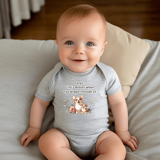 Regular price $18.99 USDRegular priceUnit price perSale price $18.99 USDCorgis: Life’s Better When You Wiggle Through It Baby Bodysuit