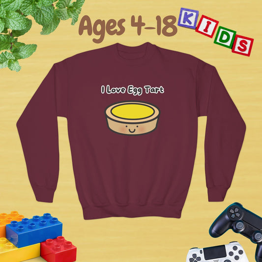 I Love Egg Tart Ages 4-18 Kids Sweatshirt - Unisex Graphic Sweatshirt for Kids