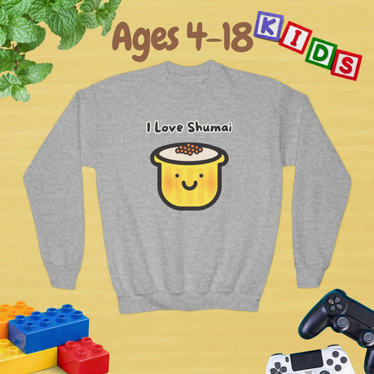 I Love Shumai Kids Sweatshirt - Unisex Graphic Sweatshirt for Ages 4-18 Kids