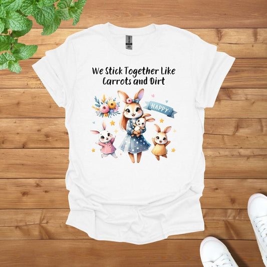 Mama & Mini Rabbits - We Stick Together Like Carrots and Dirt Unisex Adult T-Shirt
