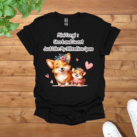 Mini Corgi: Short and Sweet, Just Like My Attention Span Unisex Adult T-Shirt