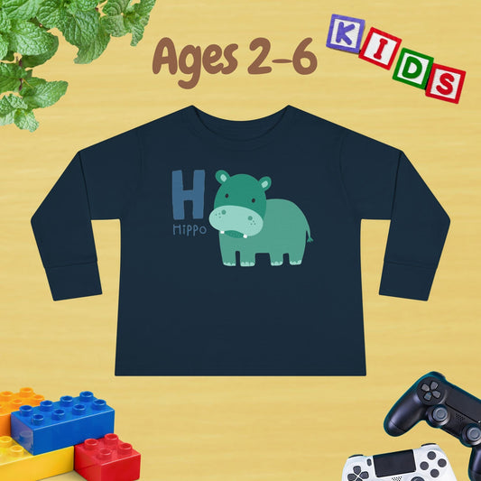 Animal Alphabet H for Hippo Unisex Kids Sweater Toddler Long Sleeve Tee Ages 2-6 - 100% Cotton Spring and Fall Kids Sweatshirt