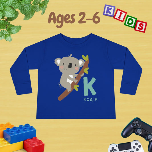 Animal Alphabet K for Koala Unisex Kids Sweater Toddler Long Sleeve Tee Ages 2-6 - 100% Cotton Spring and Fall Kids Sweatshirt