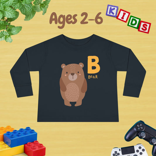 Animal Alphabet B for Bear Unisex Kids Sweater Toddler Long Sleeve Tee Ages 2-6 - 100% Cotton Spring and Fall Kids Sweatshirt