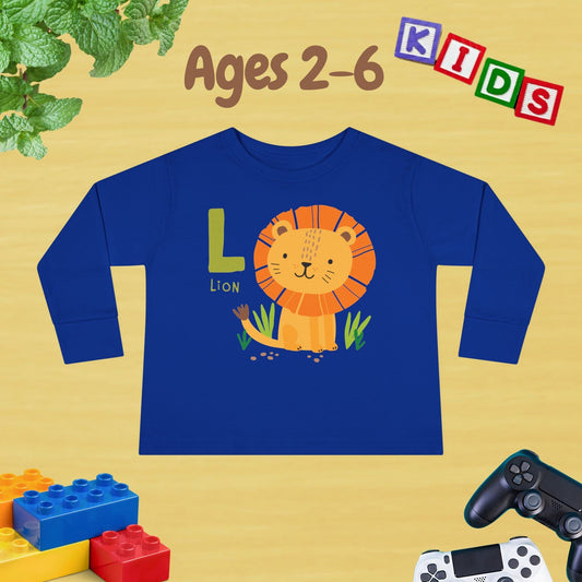 Animal Alphabet L for Lion Unisex Kids Sweater Toddler Long Sleeve Tee Ages 2-6 - 100% Cotton Spring and Fall Kids Sweatshirt