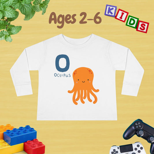 Animal Alphabet O for Octopus Unisex Kids Sweater Toddler Long Sleeve Tee Ages 2-6 - 100% Cotton Spring and Fall Kids Sweatshirt