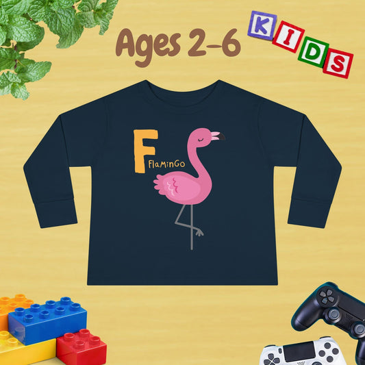 Animal Alphabet F for Flamingo Unisex Kids Sweater Toddler Long Sleeve Tee Ages 2-6 - 100% Cotton Spring and Fall Kids Sweatshirt