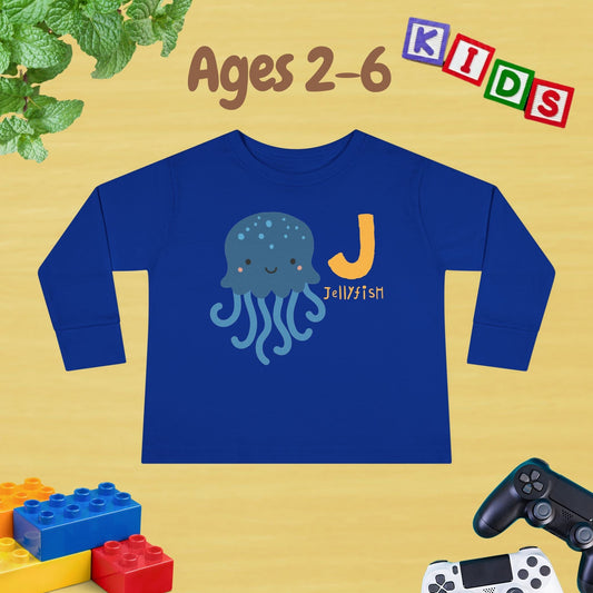 Animal Alphabet J for Jellyfish Unisex Kids Sweater Toddler Long Sleeve Tee Ages 2-6 - 100% Cotton Spring and Fall Kids Sweatshirt