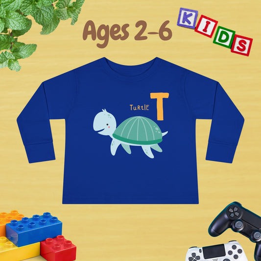 Animal Alphabet T for Turtle Unisex Kids Sweater Toddler Long Sleeve Tee Ages 2-6 - 100% Cotton Spring and Fall Kids Sweatshirt