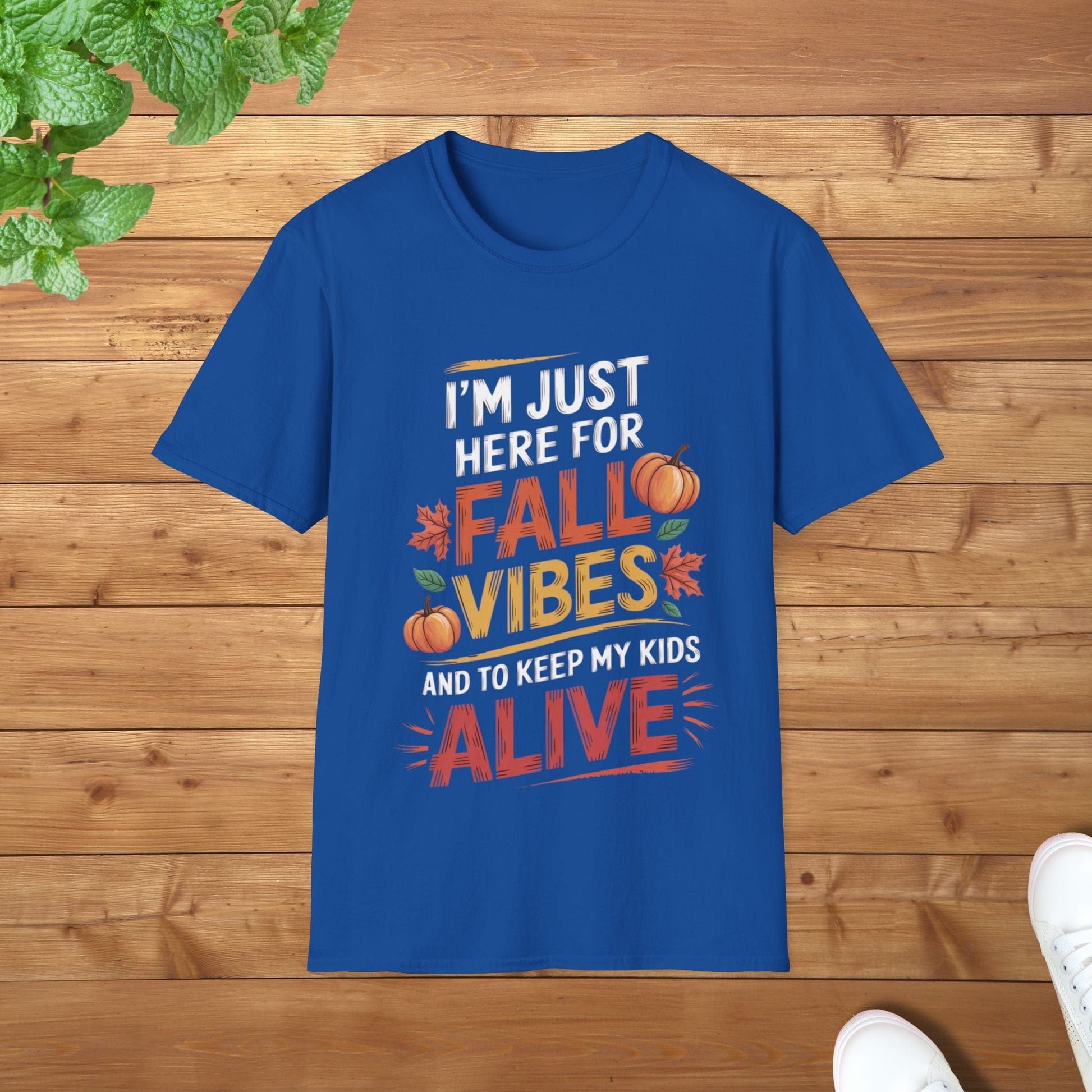 I am Just Here for the Fall Vibes and to Keep My Kids Alive Fun Unisex Adult T-Shirt - Fall Parent Humor Tee