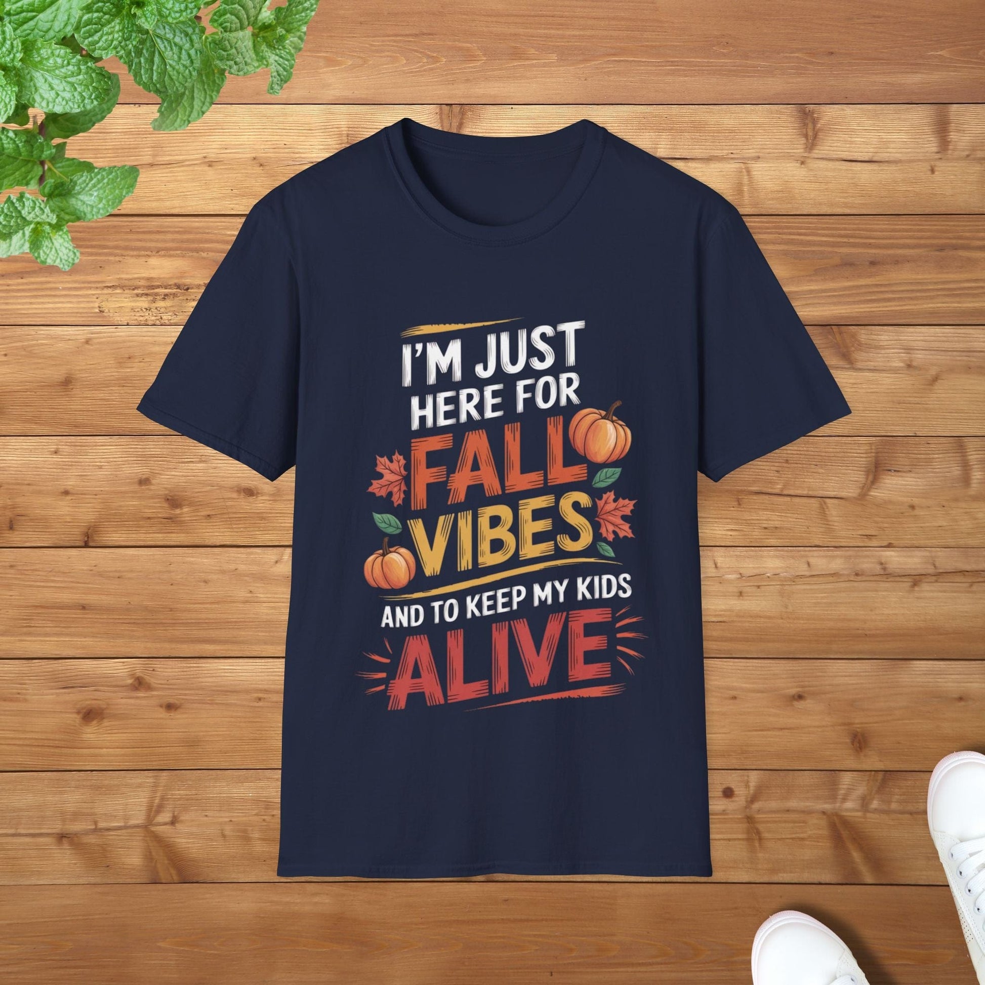 I am Just Here for the Fall Vibes and to Keep My Kids Alive Fun Unisex Adult T-Shirt - Fall Parent Humor Tee